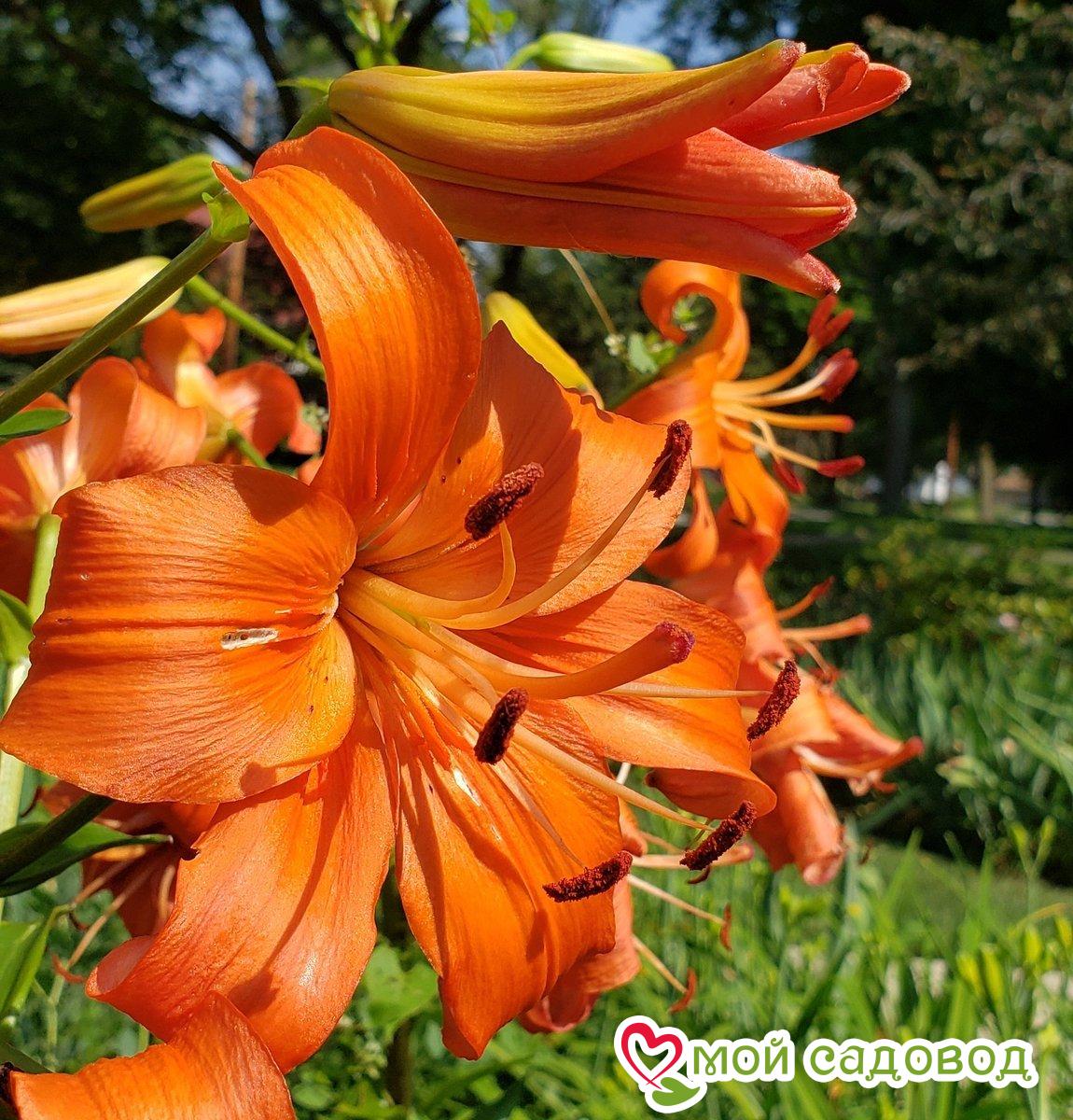 Читать далееЛилия Pearl Stacey (Перл Стейси). Цветок оранжевый, поникающий, чалмовидный. Большое количество цветков на одном стебле, длительное цветение. Высота: 110 см. Новое направление в истории тигровых лилий — сложный тетраплоидный гибрид из серии «Жемчужина». Зимует без укрытия, очень неприхотлива. Азиатские гибриды — наиболее приспособленные к условиям Средней полосы России лилии. Сорта этой группы имеют наибольшее разнообразие по окраске, строению цветков, по высоте и срокам цветения. У них, за исключением единичных сортов, отсутствует аромат. Ассортимент этой группы очень обширен.